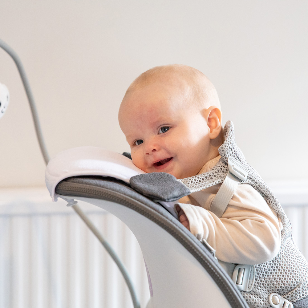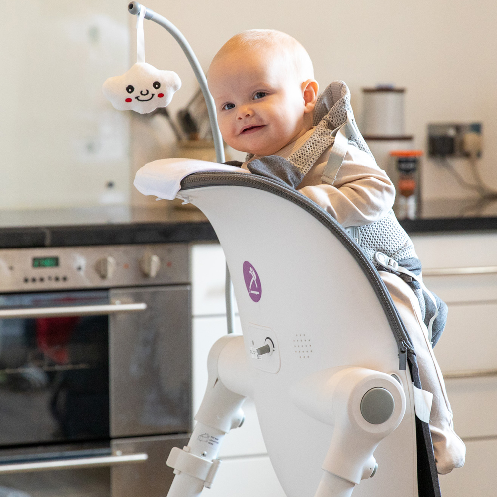 With a quick adjustment, BabyUp® transforms from a refluxfriendly seat into a highchair, making daily routines seamless until your child reaches three years of age (15kg). Two reclining positions add flexibility: