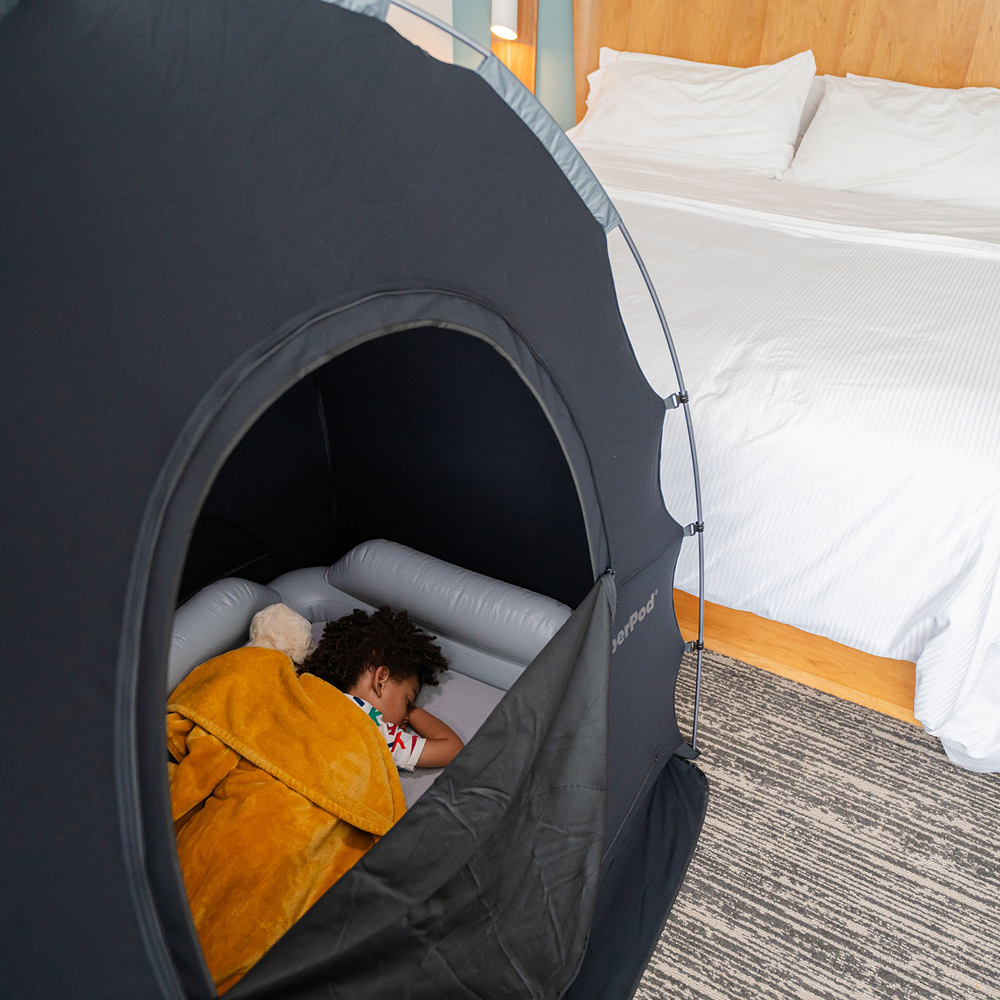 Meet the travel game-changer that allows babies and toddlers to dream sweetly with light-blocking magic! Pair with a playard, mini crib, or inflatable toddler air mattress for the perfect private sleep nook at home or on the go.